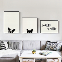 现代极简黑白装饰画客厅沙发背景墙画玄关餐厅挂画个性动物壁画狗
