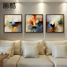 客厅现代装饰画简约沙发背景挂画艺术抽象油画三联画餐厅壁画墙画