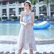 连衣裙女2017夏装新款吊带碎花中长款雪纺裙宽松海边度假沙滩裙子