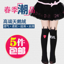 新款儿童天鹅绒连裤袜女童假高筒打底裤袜婴儿KT猫宝宝长筒袜子春