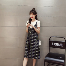 2017韩版夏装新款时尚套装连衣裙高腰雪纺中长款半身裙长裙两件套