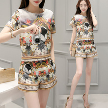 2016新款女装夏装两件套裤韩版雪纺短袖上衣加短裤休闲时尚套装女