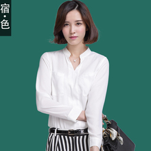 宿·色女装2017春季新款立领白色长袖雪纺衬衫韩范职业OL打底衬衣