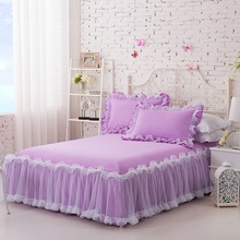 包邮韩国全棉蓬蓬纱蕾丝床裙纯棉床罩纯色荷叶边公主花边床品床套