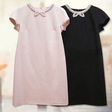 东大门2017夏新款领口钉珠女装宽松显瘦名媛时尚A字连衣裙