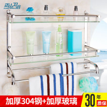 正山 浴室玻璃置物架卫浴五金挂件 毛巾架不锈钢304浴巾架卫生间