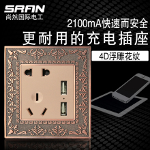尚然双口USB插座 墙壁式86型多功能五孔带手机充电插座面板香槟金