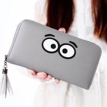 2016新款女士钱包长款时尚卡通俏皮大眼睛拉链流苏手拿包女潮学生