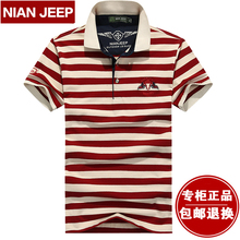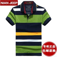 专柜正品NIAN JEEP纯棉短袖t恤男翻领条纹男士大码半袖衫POLO衫