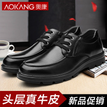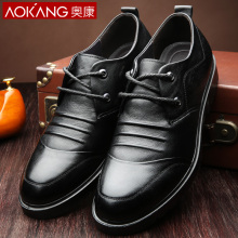 奥康男鞋春秋季男士英伦商务休闲鞋系带真皮厚底圆头中年休闲皮鞋