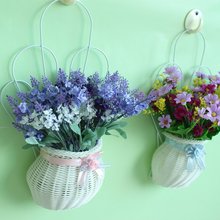 新款田园乡村创意柳编手工墙上铁艺壁挂装饰花篮家居店铺装饰品