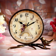 包邮 田园台钟静音 台式座钟创意 欧式铁艺客厅时尚摆件钟表小钟