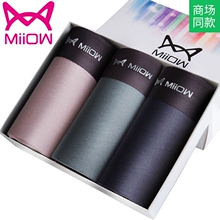 猫人内裤男士无痕 平角裤男性感莫代尔面料吸汗透气四角内裤3条装
