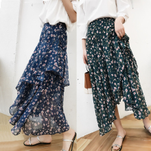 雪纺碎花半身裙女春2017新款韩版中长款气质淑女高腰夏季沙滩裙潮