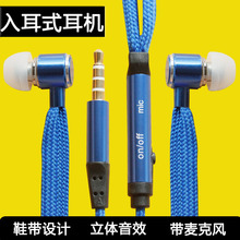 传古1350创意鞋带耳机 入耳式带麦有线控手机耳机 金属耳麦耳塞