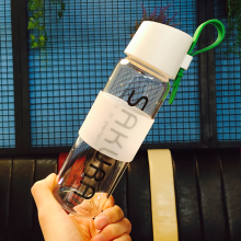 韩国女士樱花杯子情侣时尚便携随行随手杯简约字母玻璃杯提绳水杯