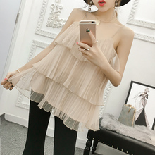 夏季气质名媛百褶雪纺衫性感露1972背层层蛋糕吊带打底背心上衣