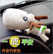 正品问童子一鹿平安 汽车除味竹炭包 竹炭公仔车内饰品摆件