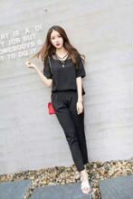 厂家直销正品短袖韩版套裤2017夏季新款圆领T恤休闲哈伦裤套装