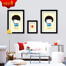 少先队员十字绣卡通系列新款情侣十字绣三联画印花十字绣客厅卧室