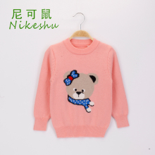 韩版儿童秋冬款加厚羊绒羊毛衫大狗熊图案女宝宝儿童毛衣长袖套头