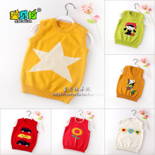 星贝拉新款男童羊绒毛衣背心宝宝马甲针织套头儿童V领卡通羊毛衫