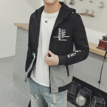 2017春款男装外套休闲连帽印字母夹克男士修身青少年棒球服夹克男