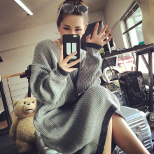 2016秋装韩版针织衫毛衣裙蝙蝠袖套头中长款学院风毛衣外套女