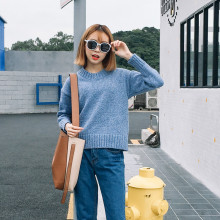 2016秋冬新款韩版复古圆领套头毛衣女短款宽松学生长袖显瘦学院风