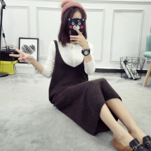 2016秋冬新款韩国女装兔绒V领毛线吊带连衣裙宽松大码毛衣针织裙