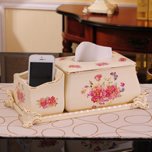 欧式陶瓷多功能纸巾盒 高档创意客厅茶几遥控器收纳盒餐巾抽纸盒