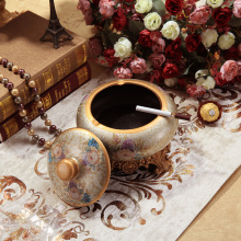 复古欧式烟灰缸高档大号带盖创意陶瓷奢华客厅茶几摆件家居装饰品