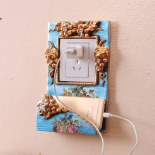 欧式开关贴墙贴立体奢华树脂插座面板保护套创意手机架客厅装饰