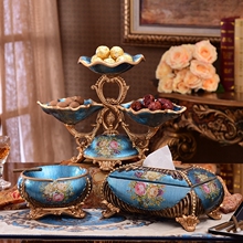 欧式烟灰缸树脂干果水果盘纸巾盒抽纸盒三件套奢华高档装饰品摆件
