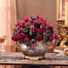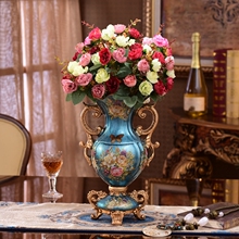 高档欧式复古田园餐桌小花瓶创意客厅奢华家居装饰品仿真插花摆件