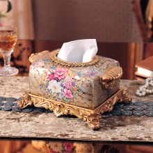 欧式高档家居装饰品纸巾盒复古树脂客厅茶几抽纸盒奢华创意摆件