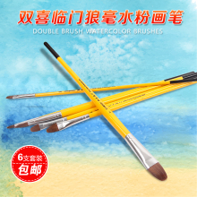 博雅美术 狼毫水粉画笔套装圆头黄杆画笔长杆6支套装 水粉笔