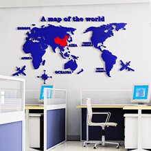 创意世界地图公司文化办公室墙贴纸亚克力3d立体墙贴客厅装饰贴画