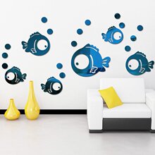 亚克力3d镜面贴客厅卧室饭厅儿童卡通小鱼水晶立体墙贴房间软装饰