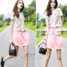 2017椿萱新品明星同款粉色立体刺绣花朵裙子T恤套装潮绣花套装女
