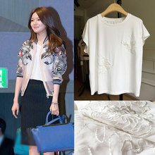 镜语 2017夏装新款明星同款崔秀英定制蕾丝绣花百搭棉T棉t恤女
