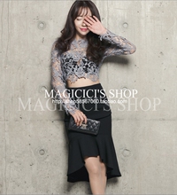 韩国代购冬款11.21超美鱼尾包臀半裙+浮雕全蕾丝透视短款上衣单买