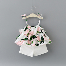 童装女童夏季吊带套装2017新款夏装女宝宝T恤短裤两件套1-2-3-岁