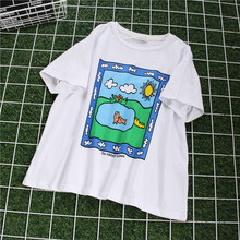 范智乔 夏装2017新款女白色卡通短袖t恤宽松韩版潮学生上衣半袖