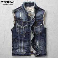 春夏款男士复古修身破洞牛仔马甲 男潮无袖坎肩青年毛边背心外套