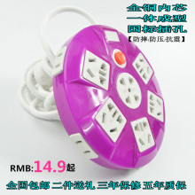 包邮家用电源排插座3米开关接线板圆形多孔创意大插排插板拖线板