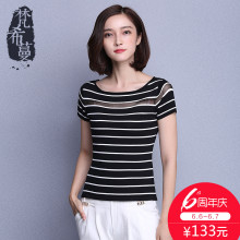 梵希蔓夏季新款韩版黑白条纹针织衫女薄款短袖修身套头T恤打底衫