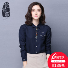 梵希蔓刺绣衬衣女装秋装新款韩版修身纯棉打底衫长袖衬衫上衣