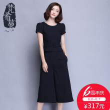 梵希蔓衬衫连衣裙两件套2017春夏新款韩版七分袖高腰套装裙子女