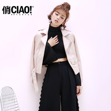 CIAO俏 2017春季新款时尚帅气机车皮衣女士短款PU皮外套修身夹克